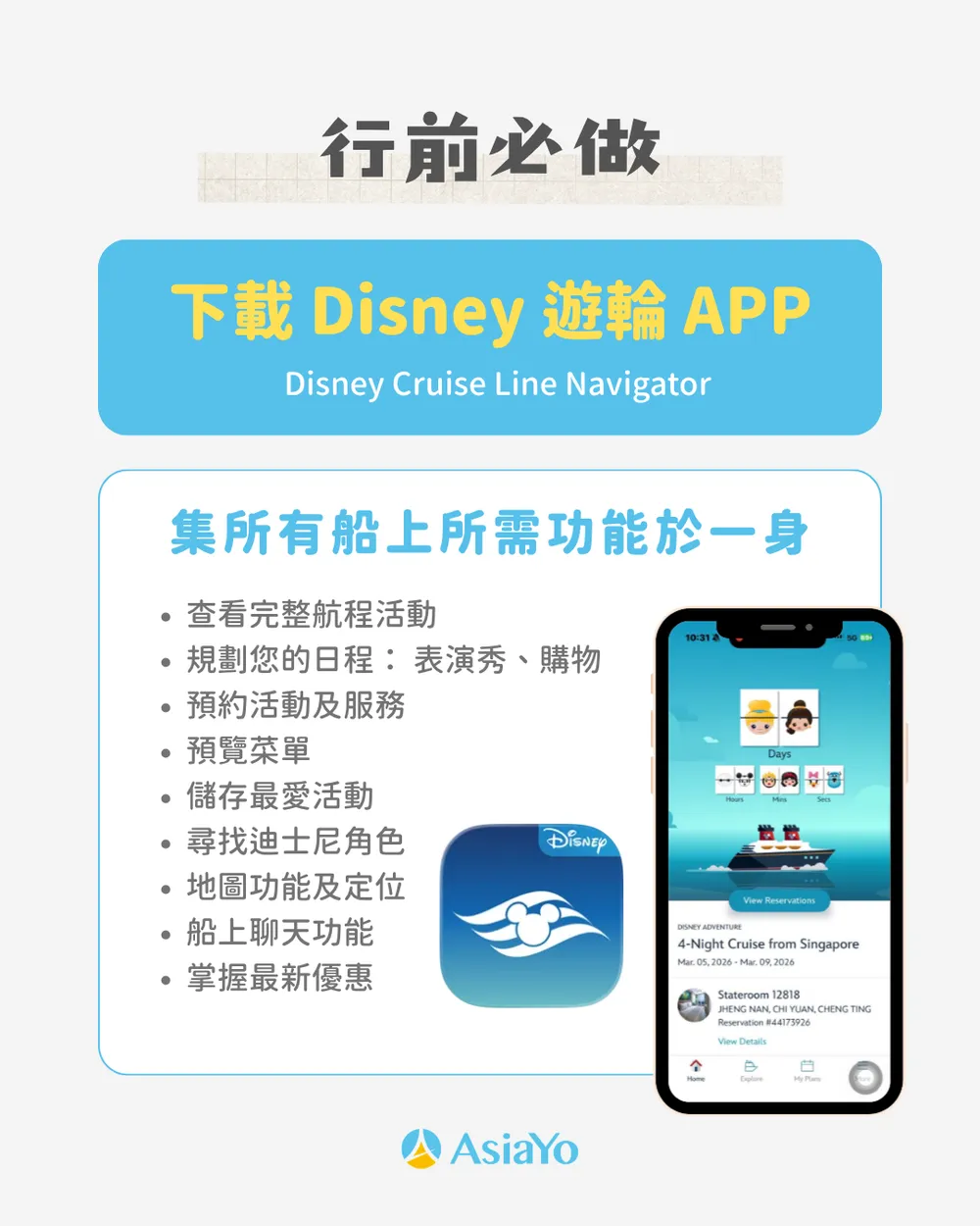 登船前請務必下載 Disney Cruise Line Navigator