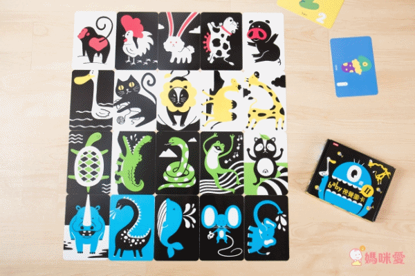 第二套「0歲baby視覺圖卡」的圖案超級搶眼的,是小怪獸&動物唷!