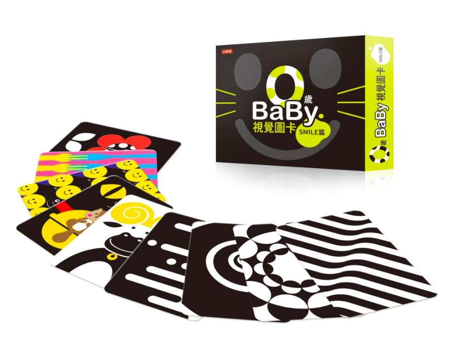 這款圖卡是給剛出生至三個月的寶寶使用的,這段期間是大腦網絡成長最劇烈的時候,甚至還有報導指出:0 ~ 3 個月,是決定未來 30 年的行為關鍵,媽咪千萬不可忽視呀ヾ(゚д゚)ノ 也因為這段期間寶寶大多看到的顏色都是黑白的,所以圖卡也以黑白色系為主~