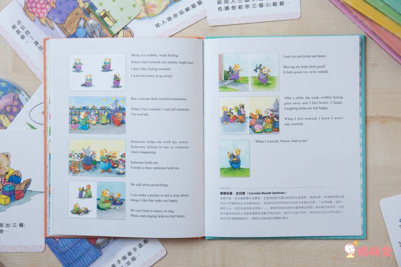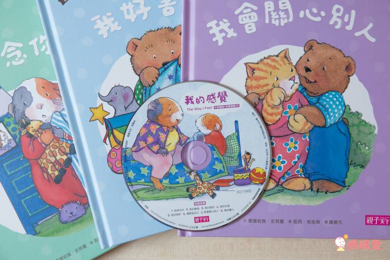 每一本都是中英對照(中文附注音)還有附贈一片 CD,與情緒共處的智慧會隨著寶貝長大而調整,想法也會不同,2y8m 的薇薇選擇的答案,到了 3、4 歲後想必也不一樣了! 這是一套可以看到學齡前的情緒好書喔~