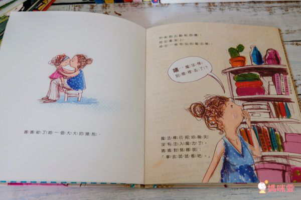 好幾次薇薇媽要出門上班時,薇薇都會抱住媽咪哽咽大哭:「媽媽!!嗚嗚嗚啊嗚哇媽媽啊~~~~~」,甚至還問媽咪說怎麼可能一直要上班(囧)這跟繪本裡面描述的很真實:「我想念你,因為你必須去工作。」
