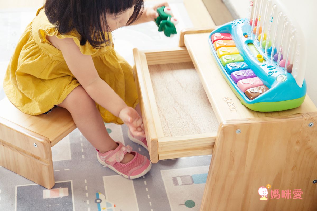 抽屜設計滿足孩子想放任何東西的小樂趣XDDD 可以將孩子常用的文具、小玩具放在裡面收納喔~