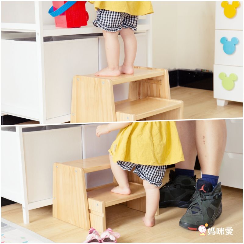 遇到比較高的櫃子可以當作小階梯,放在浴室、廚房等讓孩子自主洗手、刷牙,大一點的孩子也可以試著幫媽咪一起煮飯呦~