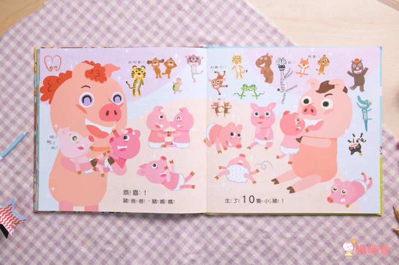 哇!恭喜豬爸爸、豬媽媽生了10隻小豬豬呢!