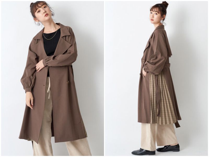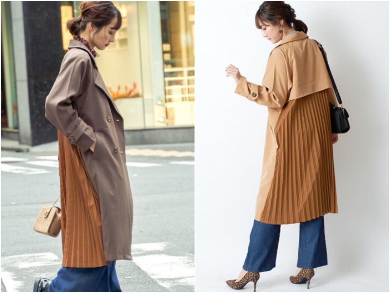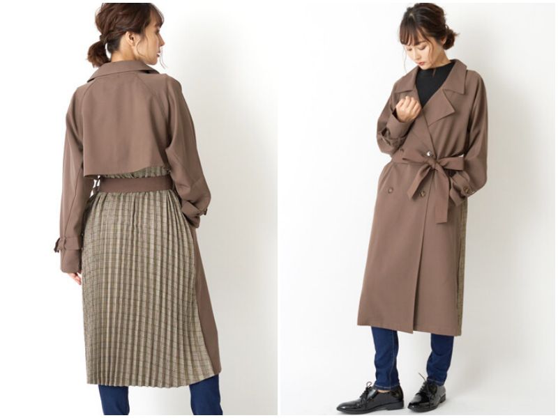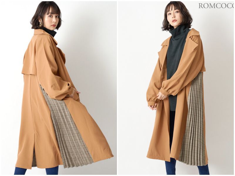 拼接絕對是今年不可少的流行元素!帥氣的風衣外套,側邊拼接百摺格紋,讓整件獨特又時尚!一轉身,那飛揚的衣襬,讓人怎能不愛上呢!!!