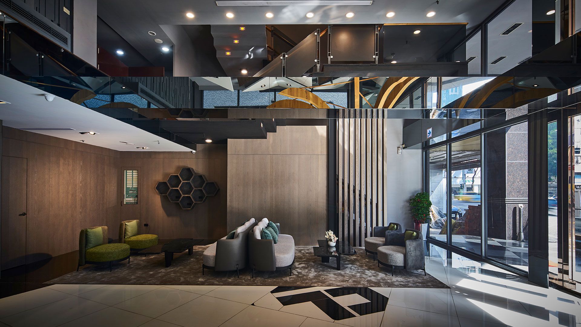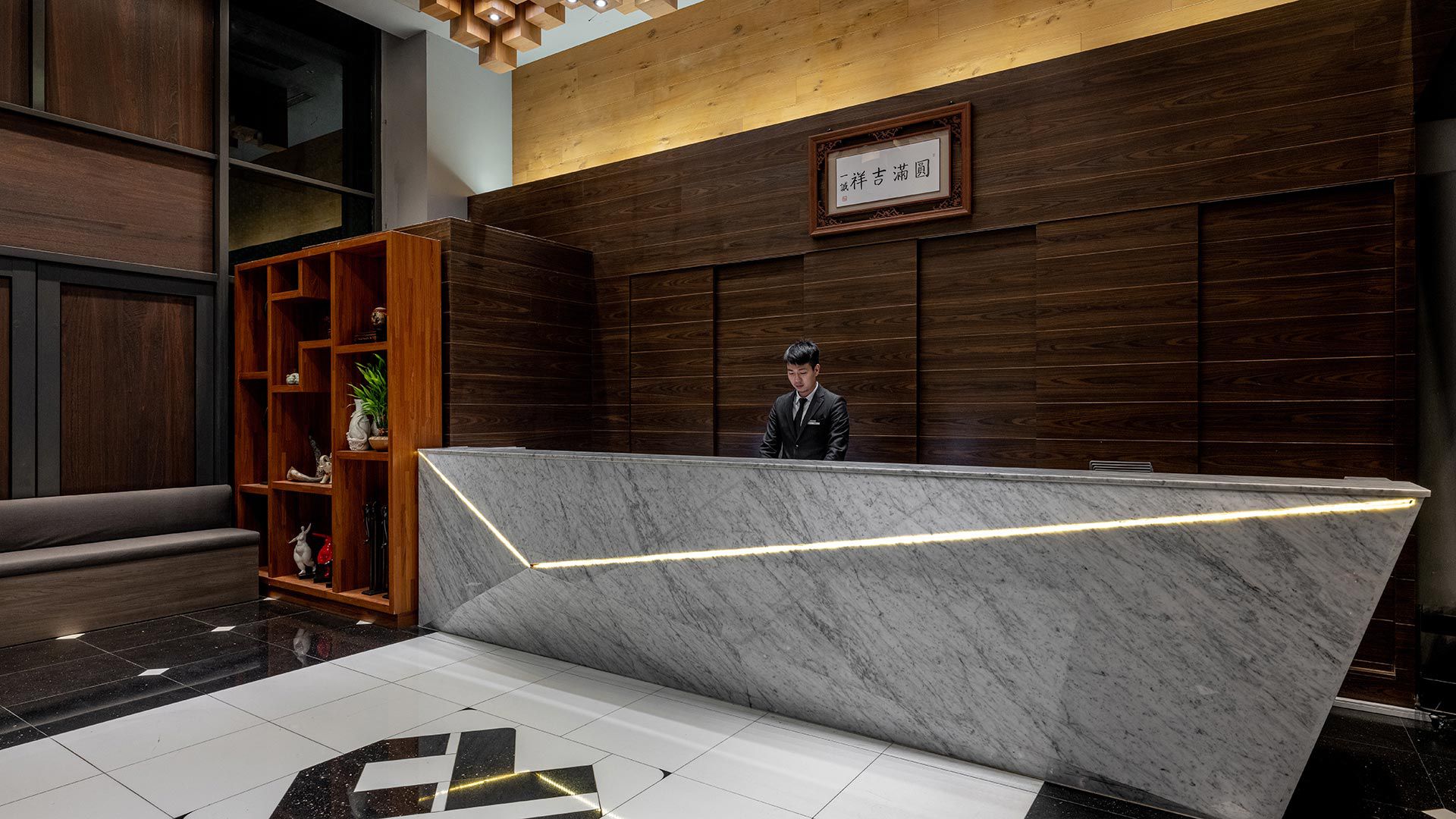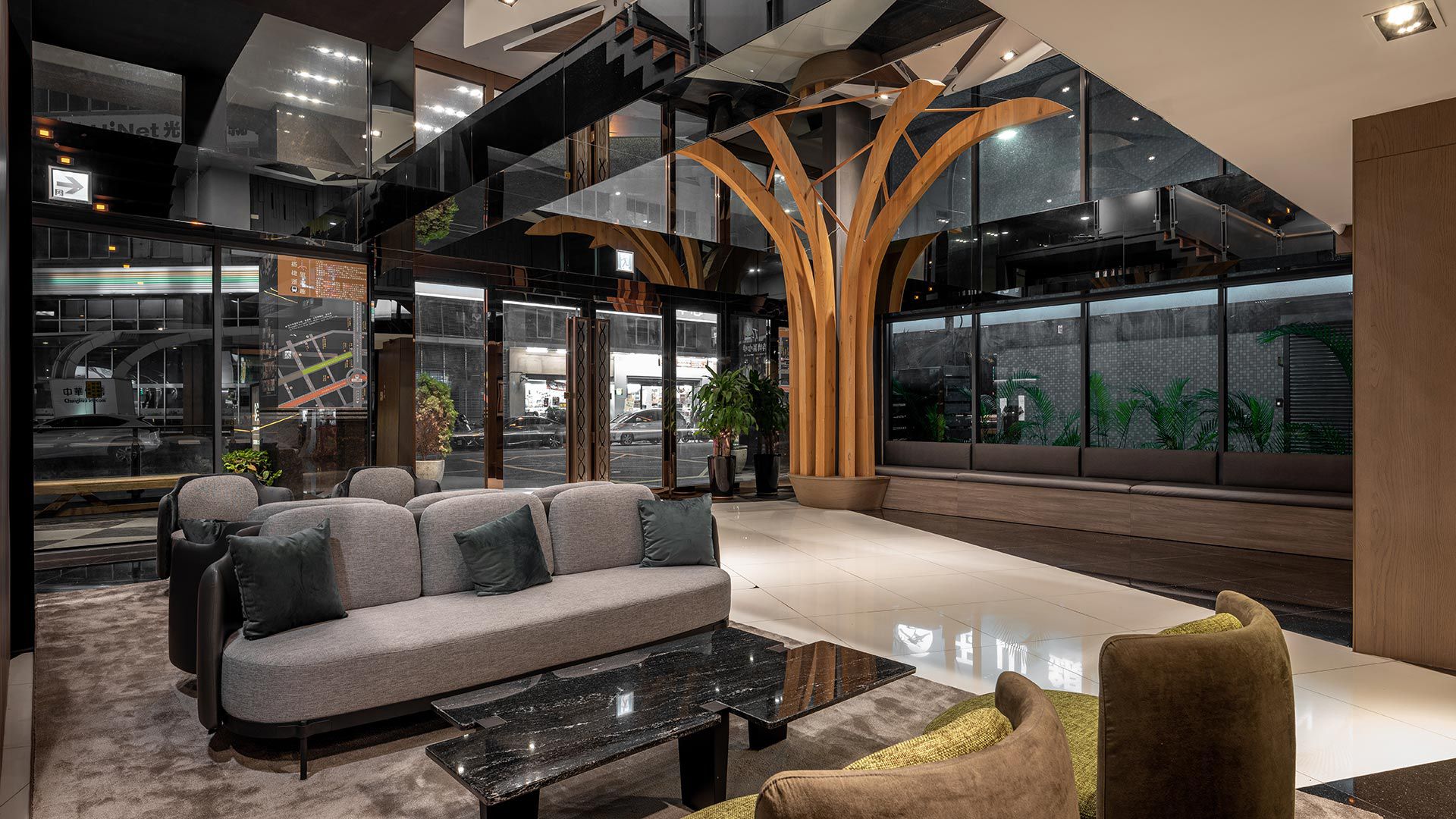 【宮賞藝術大飯店】的大廳非常的有設計感,低調沈穩的色系搭配木質裝潢,更顯時尚摩登感。