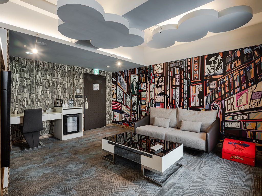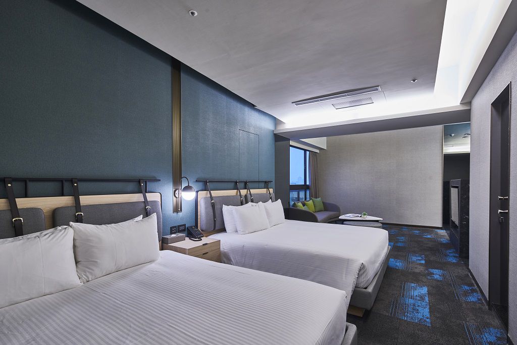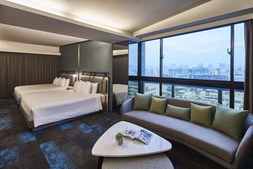 最後一間套房,不是親子主題而是擁有絕美景觀和大沙發的房型,也一併參觀一下吧!若只是想找一個鄰近捷運站、交通方便的住宿地點,也可以選擇豪華四人房入住,也是非常優秀的房型唷~