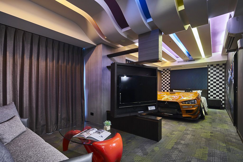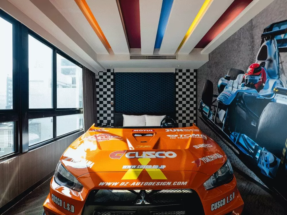 這輛跑車造型的雙人床,實在太酷啦!就連大人也會很想跳上去呢!聽說床尾的車頭是老闆買下正港國外賽車冠軍的賽車,運回台灣重新設計而成,居然可以睡在冠軍跑車上面耶!