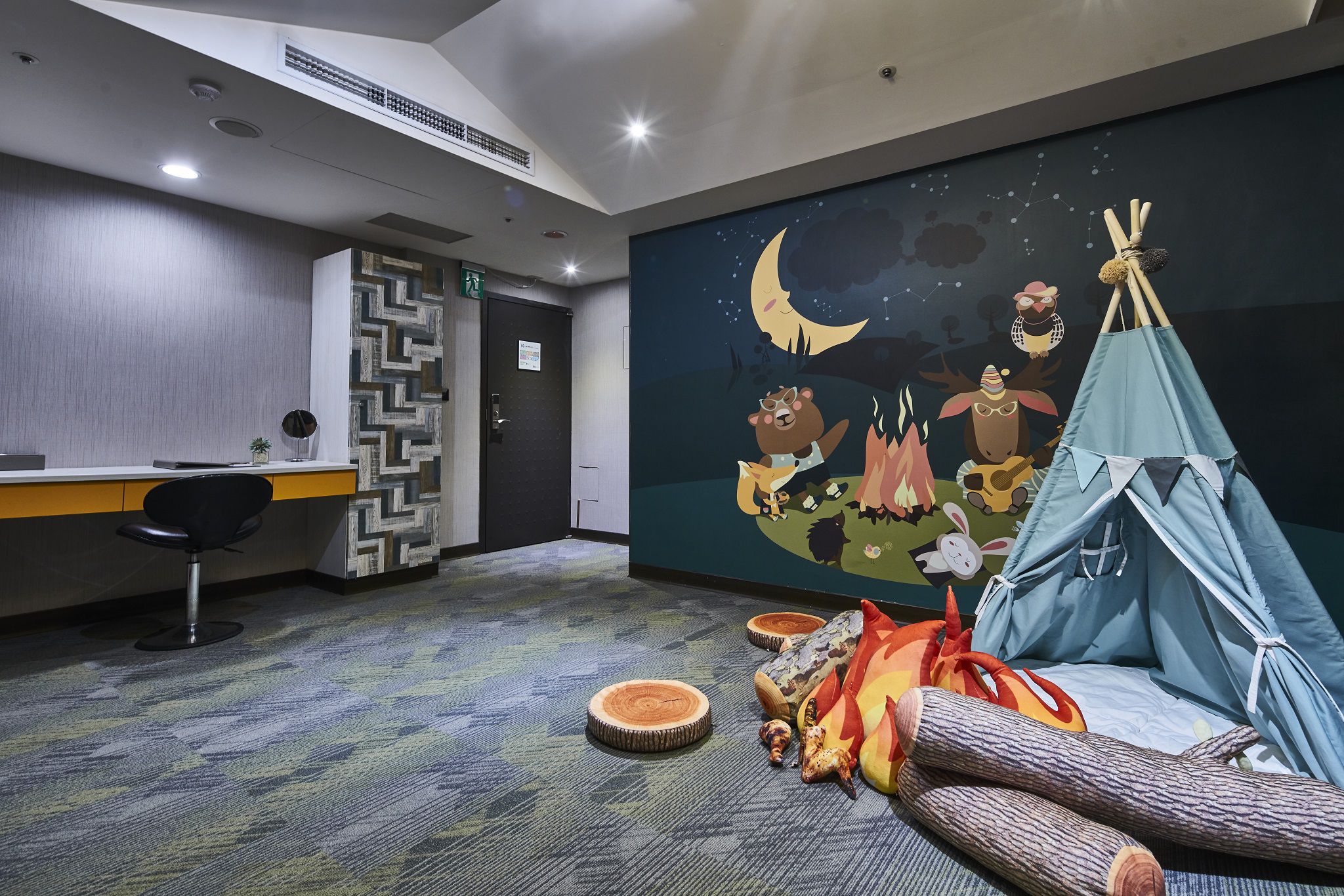 不但設計了適合孩子遊樂的特色房間,也有提供嬰兒床、澡盆給需要的家庭。飯店特殊主題設計的房間,共有 6 種四人房型,和 4 種雙人房型,另外也提供一般的宮賞四人房可以選擇唷。雙人床的床型夠大,只有一寶的小家庭共睡一張床也沒問題!