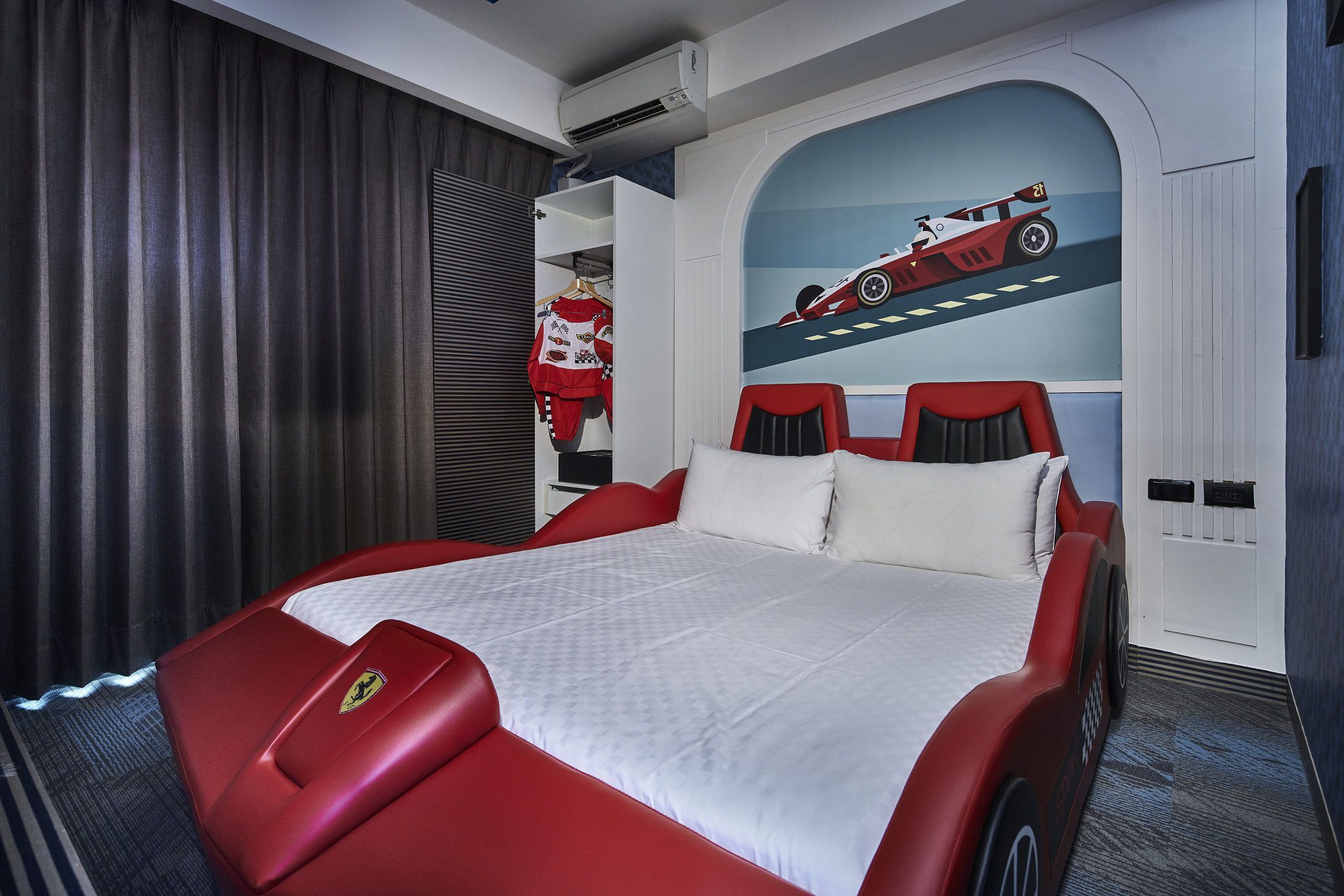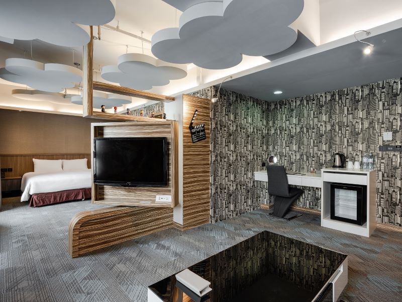 高雄宮賞藝術大飯店有十種主題造型房,包含酷炫的跑車雙人床、卡皮巴拉,還有真人版的大富翁等設計情境,讓孩子玩到連房間都不想離開了~由於高雄的親子飯店並不多,因此老闆花了 3~4 年籌備,才打造出這間充滿特色的親子旅宿,十分用心。