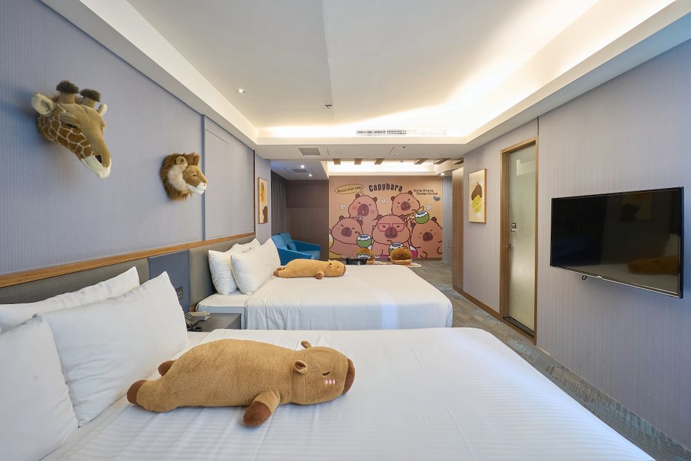 註:本專案為「平日雙人/四人房一泊一食,每房加送卡皮巴拉娃娃(隨機)」,雙人房可選「主題設計雙人房」、四人房可選「豪華四人房或主題設計四人房」。
