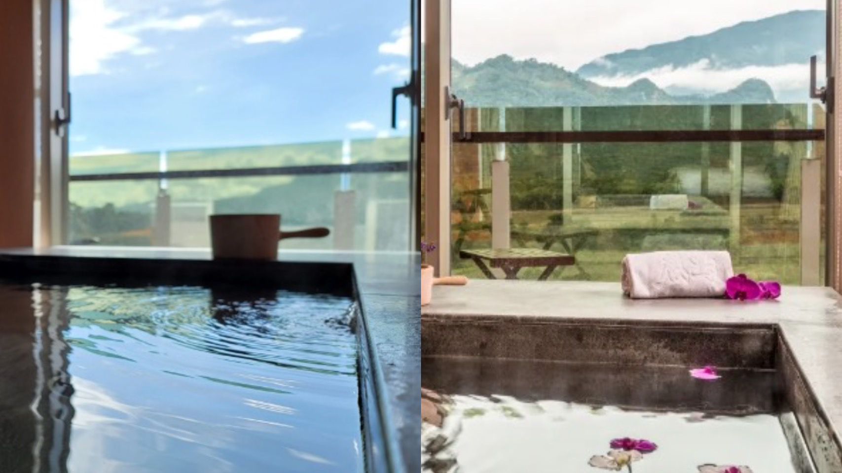 白天在房間泡湯看出去窗外也是非常的放鬆跟愜意啊😌(此圖為其他房型泡湯示意圖,實際角度請依據現場房型為主)