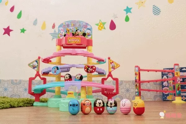 基本組+6 隻角色球球就能變成一座小城堡喔!基本組裡內含一隻米奇不倒翁球球,他會一邊翻跟斗一邊往下滾動唷!