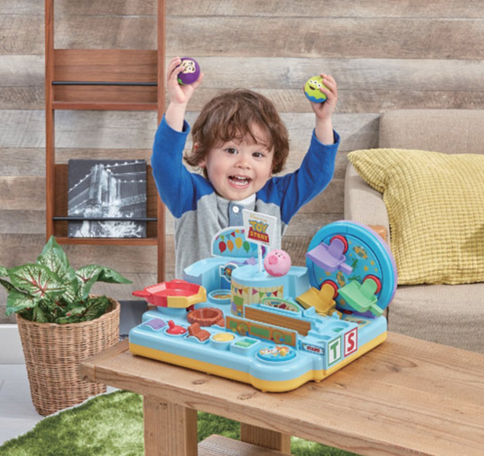 小朋友都是用感官來探索世界,其中透過遊戲是學習最佳捷徑了!「米奇顏色球球轉轉樂」藉由繽紛的音樂滾球,強化寶貝的眼、耳、手的刺激!從 1 歲開始單純練習投放球、訓練抓取能力→ 1 歲半~2 歲學習把球放到冰淇淋上、記住卡通人物的名字和顏色→ 3 歲以上更了解數數和顏色的概念,就勇敢挑戰問題囉!
