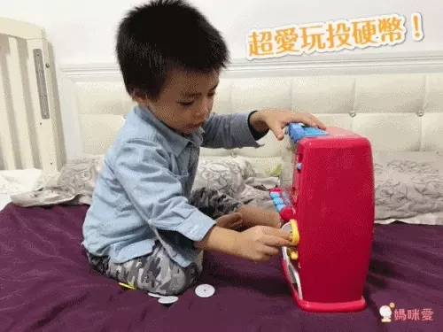 叡叡光是一個勁地把所有硬幣投光光,然後再狂按退幣鍵,看硬幣通通掉出來,他就超開心啦!只能說小孩都很熱愛玩硬幣啊XD
