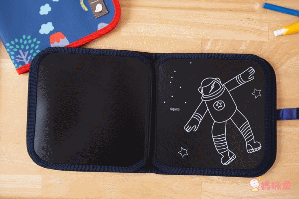 一樣裡面會有8頁空白頁面給孩子盡情創作,私心最喜歡這款外太空款,深藍色的封面加上黑板底特別有質感 ❤