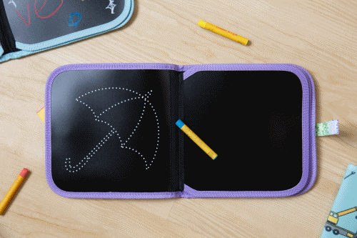 各種外出場合、旅行以及車程的良伴,就是攜帶型的粉筆畫冊啦!輕便好攜帶,也不用擔心畫得到處都是,或是要另外準備一堆紙張。