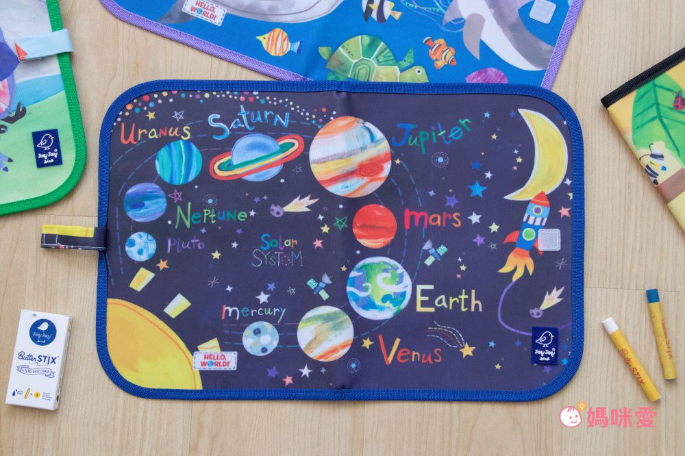 繪畫墊有四款,恐龍、太空、海洋生物、水果與昆蟲。超級有夏天的氣氛耶!