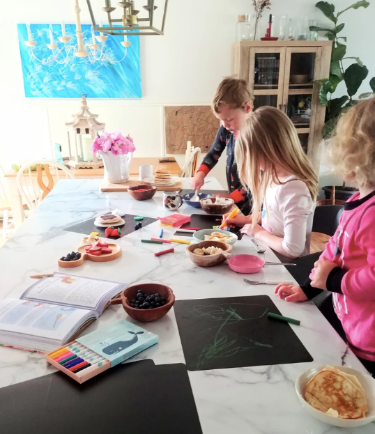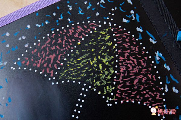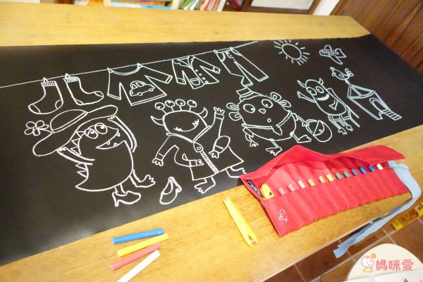 大型桌畫布真的超讚的,除了能隨喜好鋪在餐桌或是地板上作畫,也可以當作家用黑板來使用,而且正反面都能寫字作畫,邊繪畫邊教孩子們認字,在家就是小小的教室唷!