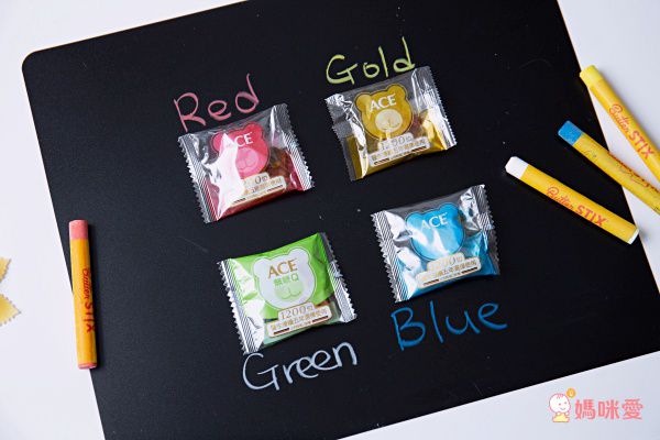 天然無毒無灰的粉筆,和軟糖擺放在一起也讓媽咪很安心!