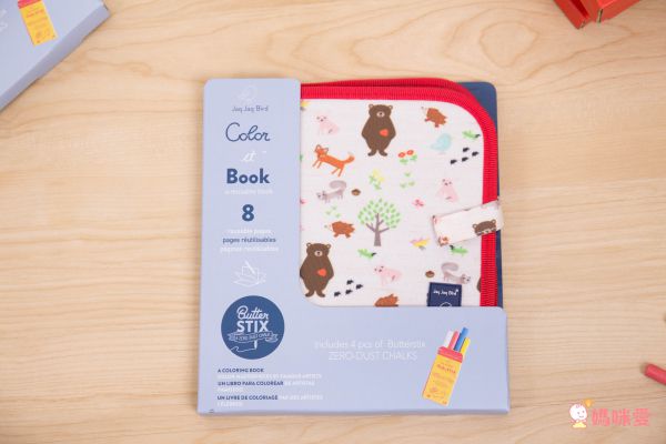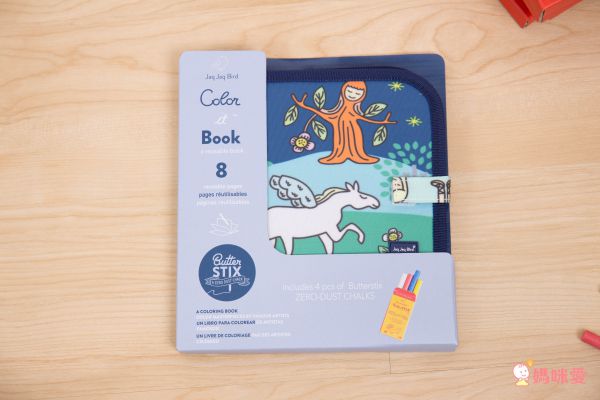 Jaq Jaq Bird 家的粉筆標榜無毒,且濕布即可擦拭,市面上大多數都是販售蠟筆較多,所以一開始好奇為什麼不是搭配蠟筆,值到寶寶上手畫了之後,瞬間恍然大悟,粉筆較蠟筆更好著色,寶寶也很輕鬆的就能在繪本上著色!
