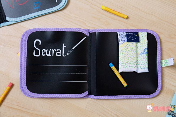 末頁附有筆袋以及 4 隻彩色粉筆組,是超方便隨身攜帶的收納設計唷!走到哪畫到哪!