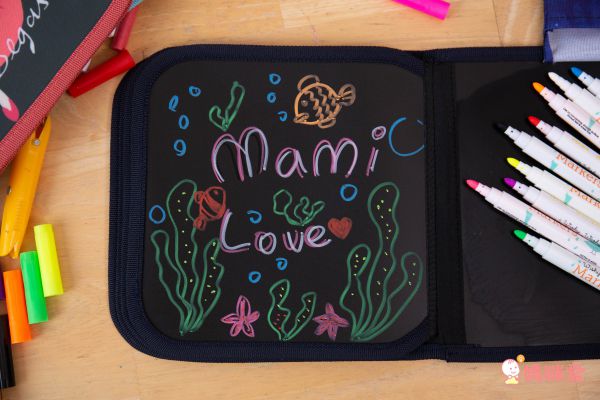 水性筆為環保無毒性材質,與粉筆均可於畫冊上作畫,以濕紙巾輕鬆擦拭即可清除不留痕跡,爸媽清理容易~