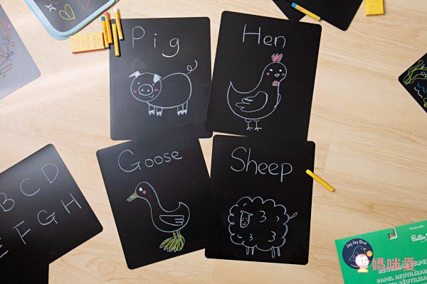 媽咪也可以先在上面寫好英文單字,考驗孩子能不能畫出對應的動物呢?