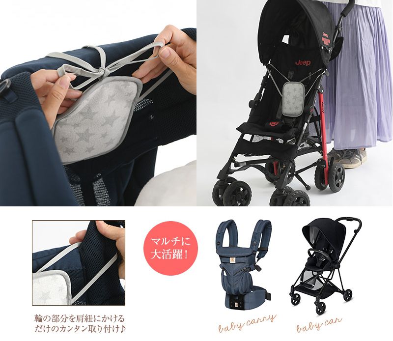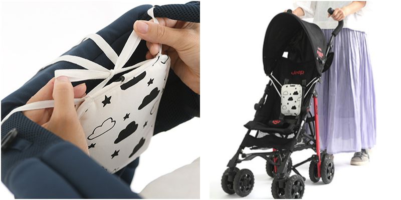 綁帶固定設計,不管推車是三點式、五點式都適用喔。