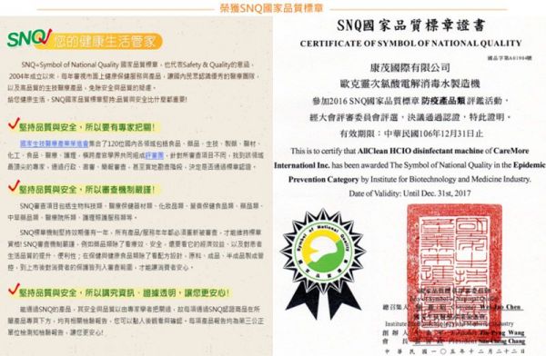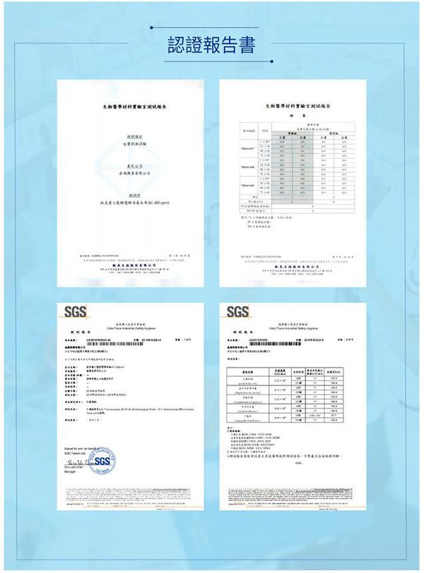 通過 SGS 針對五種常見病毒做的殺菌測試,抑菌率高達99.9%,並且榮獲SNQ國家品質標章喲~