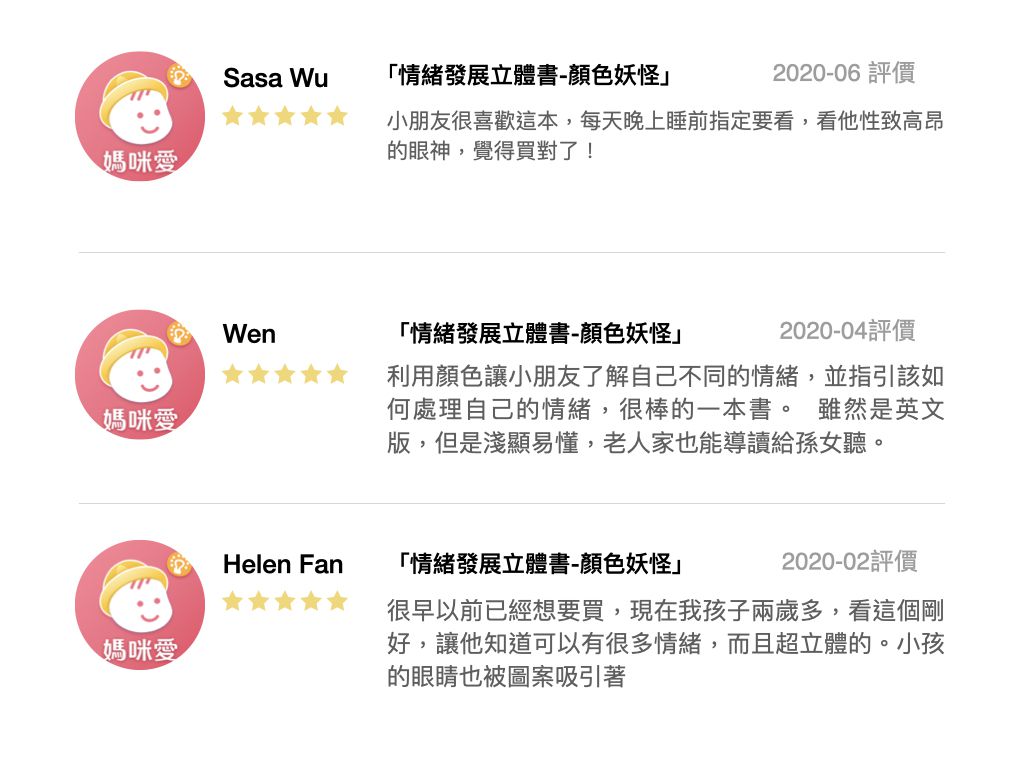 小孩的情緒是最直接的!但他們無論是玩具不見、肚子餓、累了,一律用“哭鬧”來處理,結果就是媽媽不知道你到底發生了什麼事情啊?一下哭、一下鬧,其實是因為他們還不懂什麼是情緒,更別說是要如何處理情緒了。想要和小朋友解釋抽象的「情緒」也是很不容易的事!上次一開團就搶破千本的《顏色妖怪 The Color MONSTER》好評再開團啦!這本書除了有超驚豔的立體效果,它還能用很可愛的方法告訴小朋友如何表達心中的感受喔!
