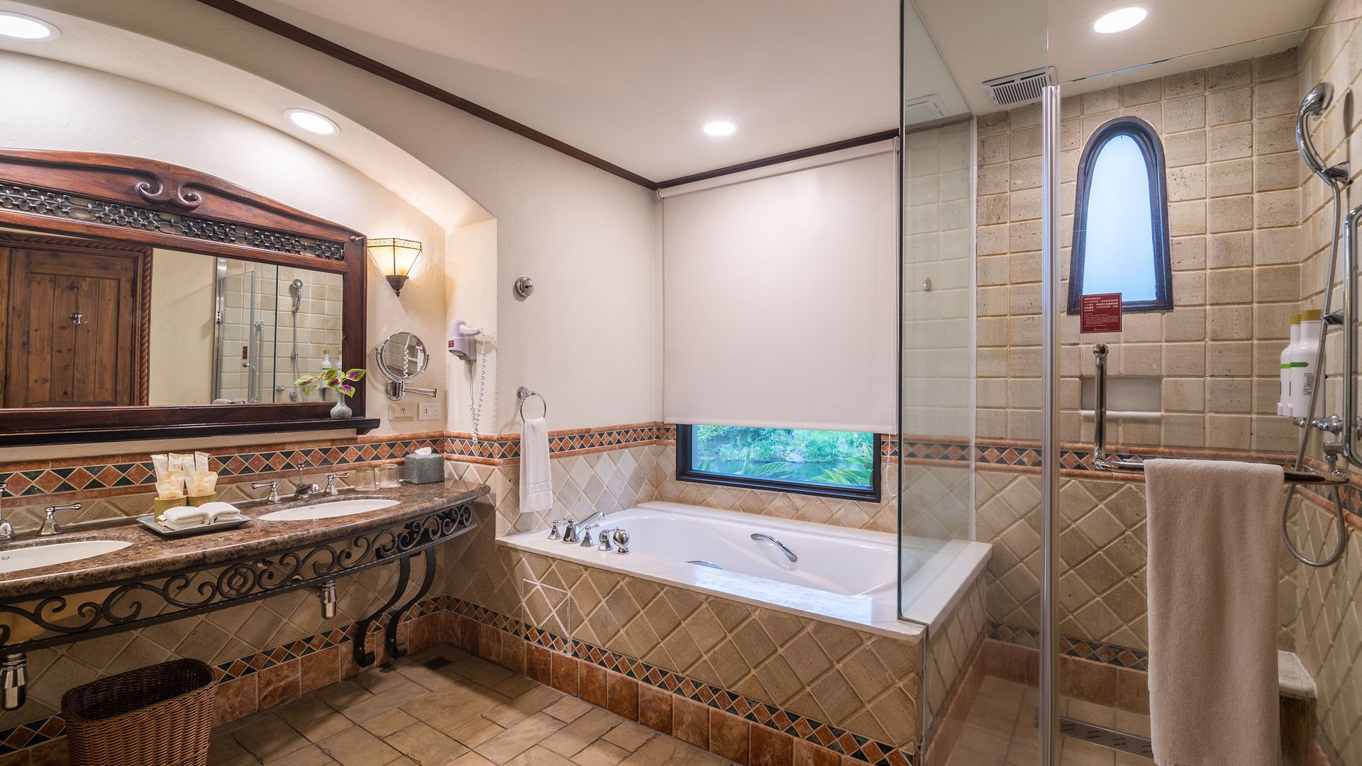 套房的浴室都是雙洗手台、乾濕分離淋浴、加上一個舒壓浴缸,明亮寬敞。帶兩小的家庭可以讓孩子一人洗一邊(蓮蓬頭是移動式的),讓洗澡的過程更有效率!玩累了一天,全家人就能夠舒服地洗個澡、香甜入睡啦~