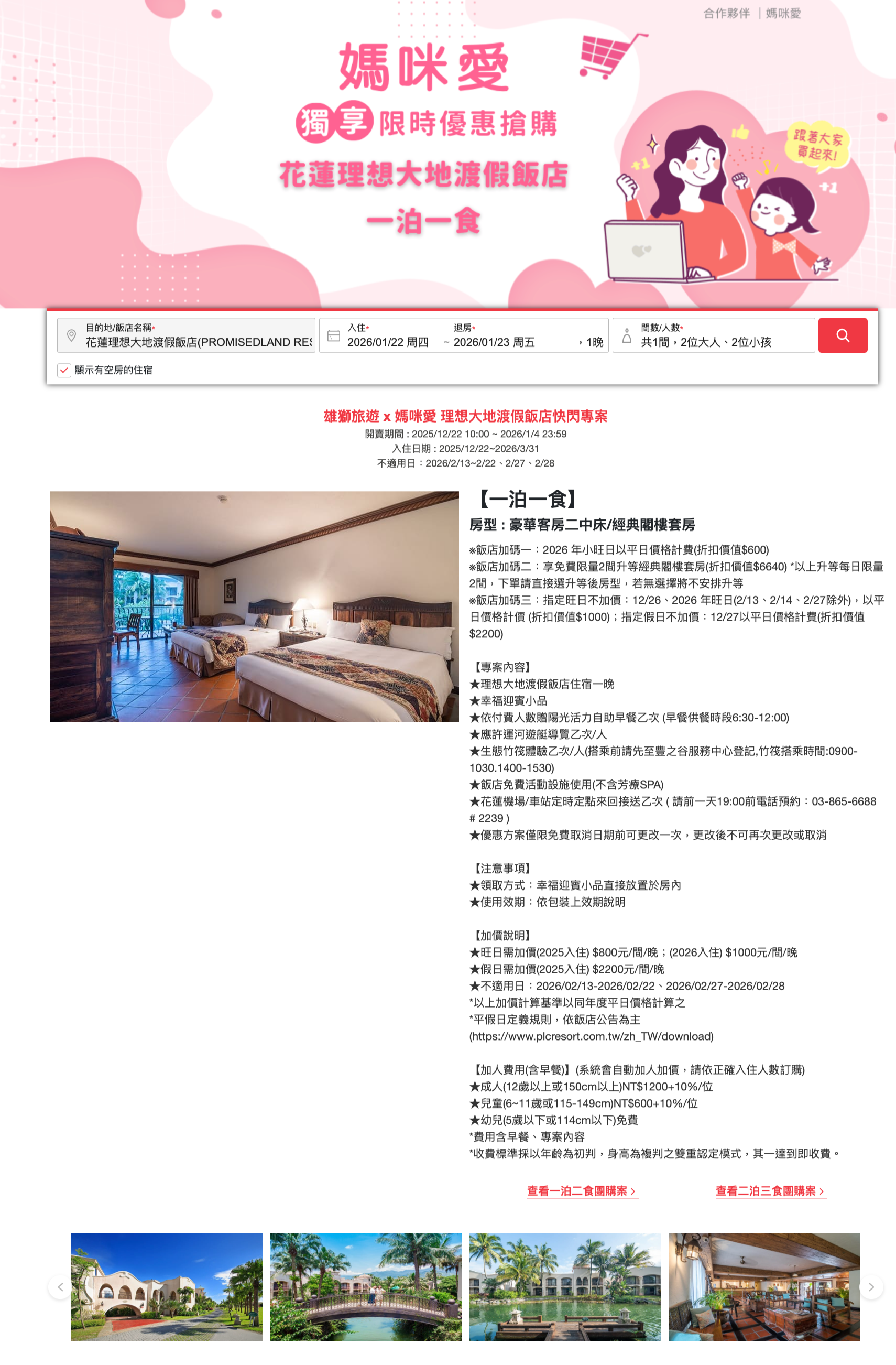 可入住期間:即日起 - 2026/3/31 (不適用日期依不同專案而異,請洽下文說明)