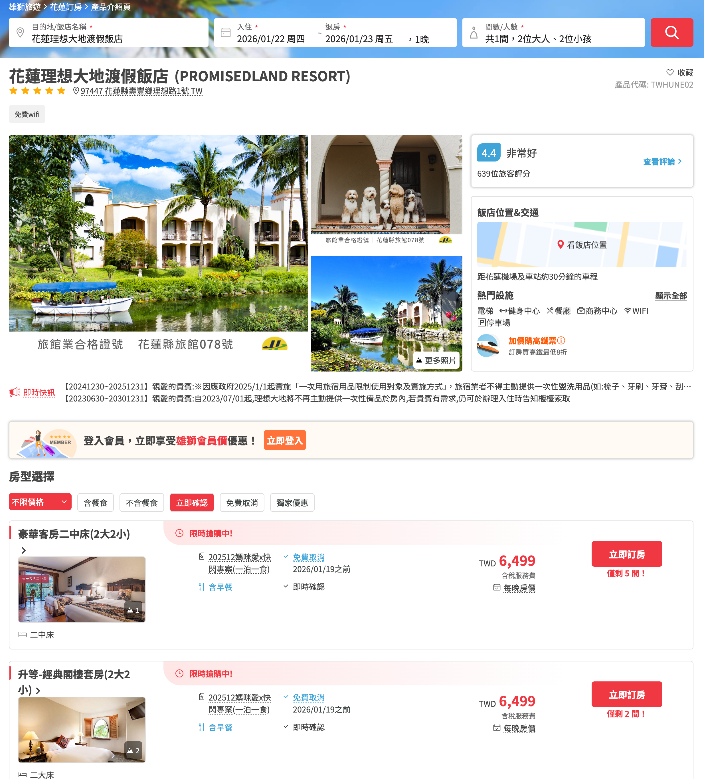 請注意!如需升等房型,請於訂房時直接選擇升等的選項(如沒有出現則表示該日升等2間已額滿),如無選擇將不安排升等。