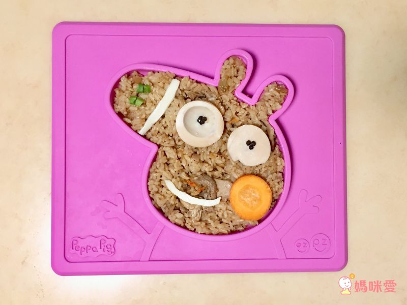 自從用了ezpz珮珮豬餐盤,柔柔吃飯的時候堅持要把碗裡的飯倒進餐盤裡吃,就知道這餐盤魅力有多大了~