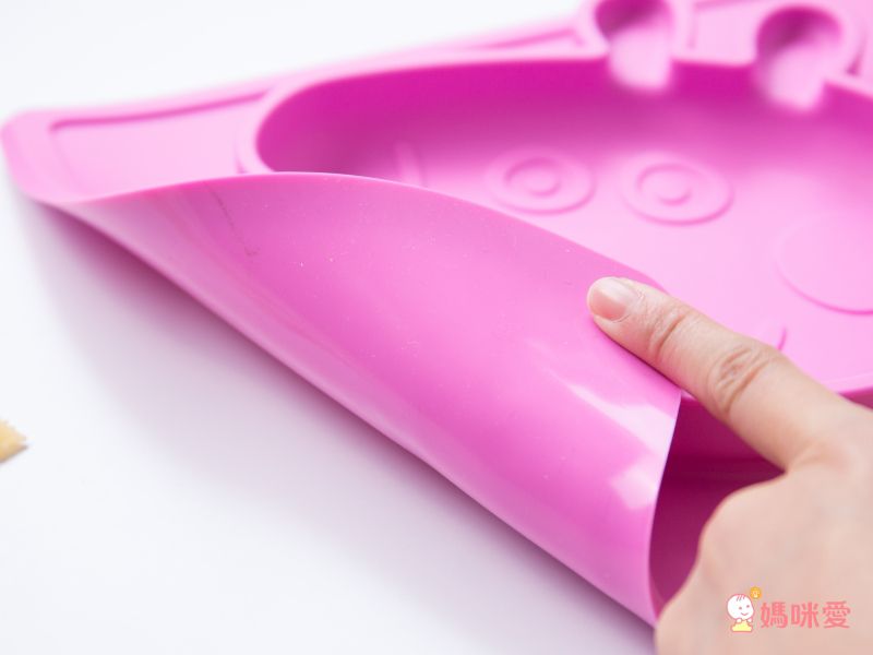 矽膠材質,底部可以完美吸附光滑桌面,吃飯不易打翻!
