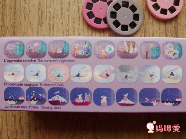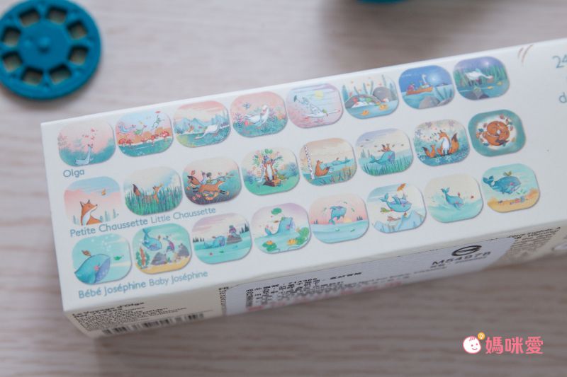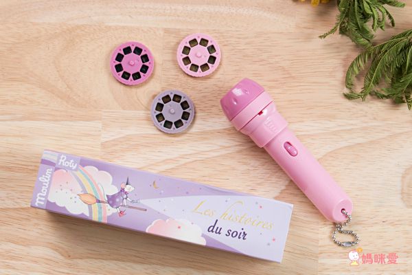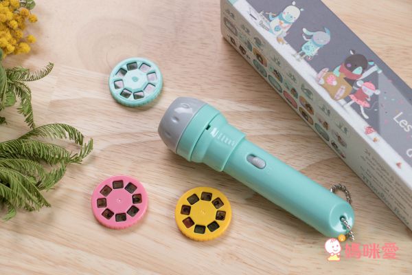 首先要介紹每次開團都搶翻的故事手電筒,故事手電筒和幻燈片是 Moulin Roty 非常有特色的玩具,每一組裡面都有一隻小小手電筒和三片幻燈片。