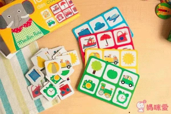 這套圖卡也可以玩超簡單版配對,例如只要翻出相同顏色就是一對;玩小朋友版心臟病,看誰最先說出圖卡上的東西;或是讓低幼齡孩子試著將圖卡與題目卡的圖案直接配對。