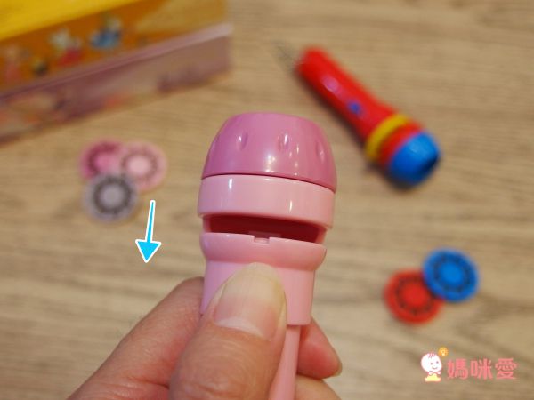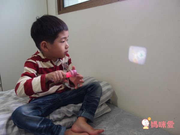有了這支手電筒,就可以把圖案投射到牆壁上,房間愈暗,投射出來的圖案愈漂亮喔~有沒有像在看電影的感覺呢?