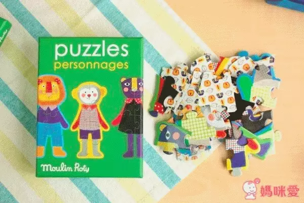喜歡玩拼圖的寶貝,還有這盒 Moulin Roty 的動物拼圖可以一起帶回家,裡面有猴子、獅子、大象、貓咪等四款拼圖喔~不同於一般的正方框拼圖,拼圖邊邊是不規則的動物身體形狀。