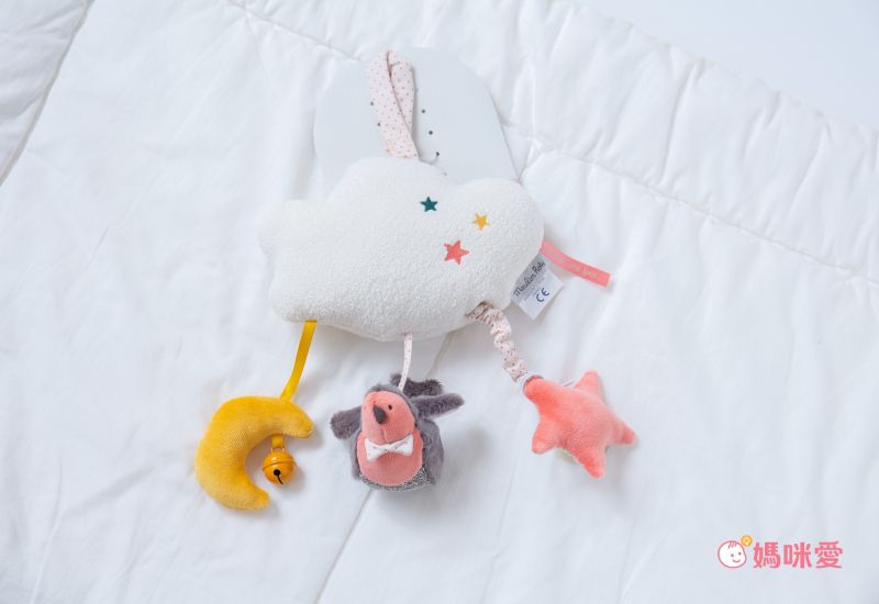 可以安撫寶寶情緒的「漂浮雲朵音樂鈴」懸掛在嬰兒床、推車,可愛的造型、輕柔音樂,有效安撫寶寶焦躁的情緒,也能陪伴孩子入睡。