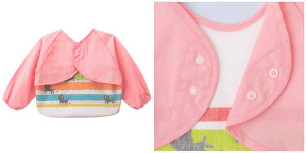 跟普通圍兜兜不一樣,編媽覺得這系列穿上去比衣服還可愛啊!而且長袖防水材質,不管是吃飯或是玩遊戲,連袖子都照顧到啦,媽咪不用煩惱寶寶兩袖髒髒。