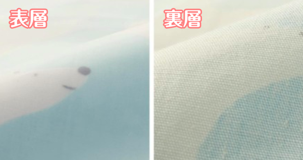 表層是EVA防水布,不怕湯湯水水,輕輕一擦就乾淨。跟身體接觸到的裏層則是平織的綿素材,不會磨皮膚不舒服唷。