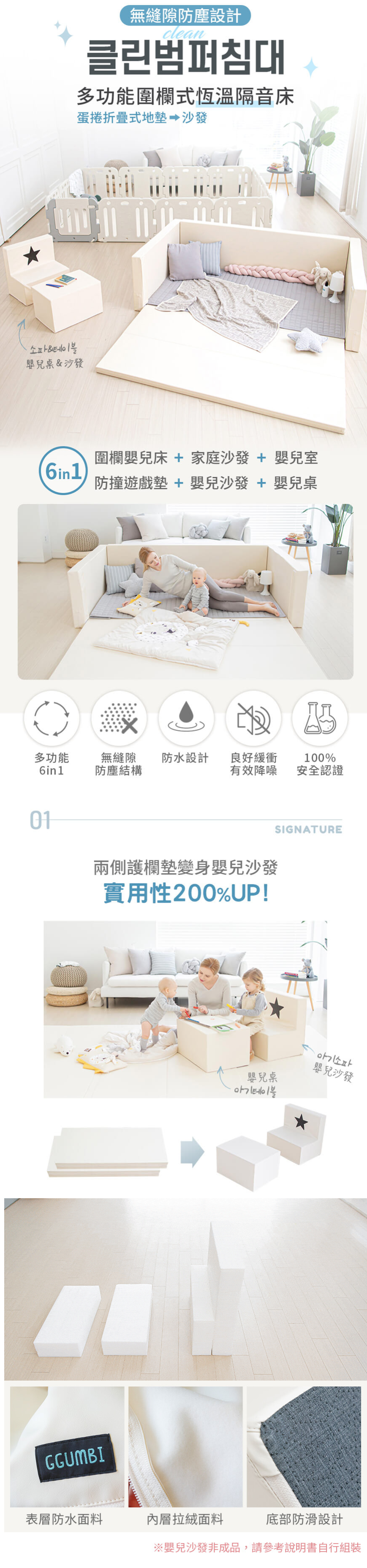 孩子在不同月齡對地墊的需求也大不相同,如果有一款地墊可以兼具遊戲墊、圍欄,甚至嬰兒床,長大後還可以有遊戲沙發的功能,真的超划算的!買一咖,從小用到大!現在就讓編媽來介紹一下【韓國 DreamB/GGUMBI】的新品:多功能圍欄式恆溫隔音床!