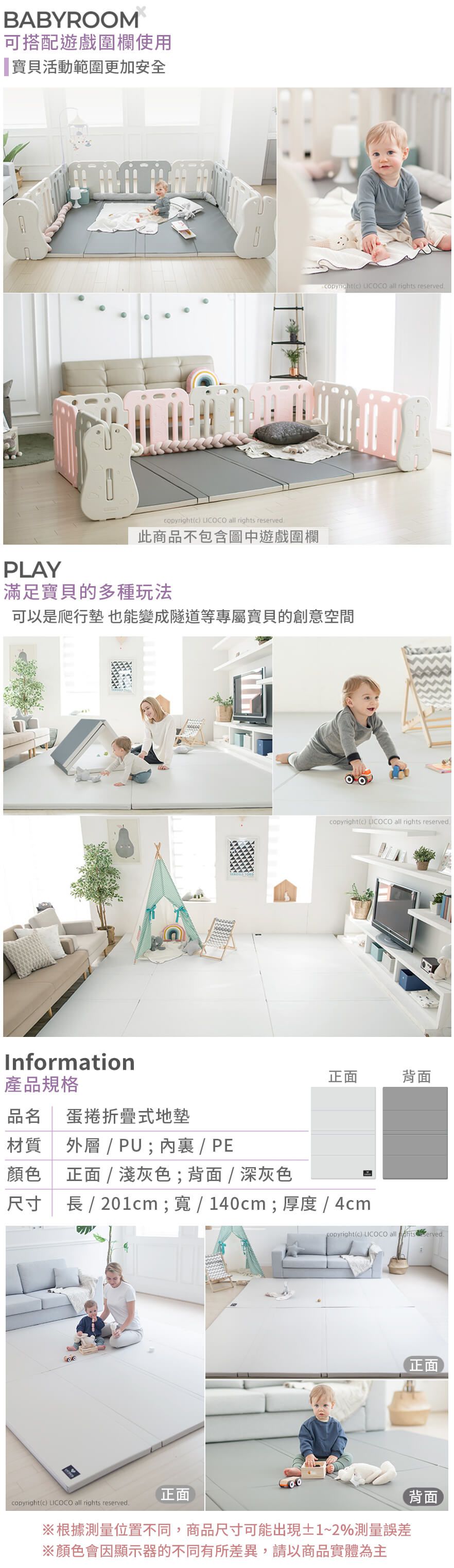 多功能圍欄式恆溫隔音床總共有3種尺寸,媽咪們要看清楚囉!接下來以尺寸最大的版本來介紹~