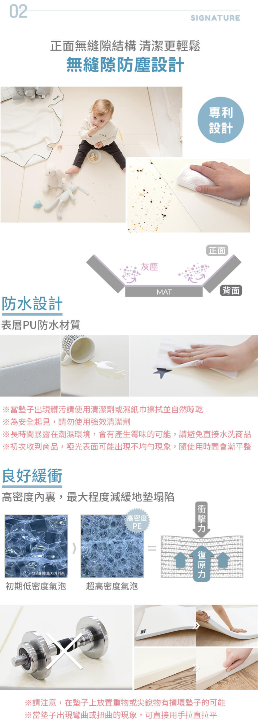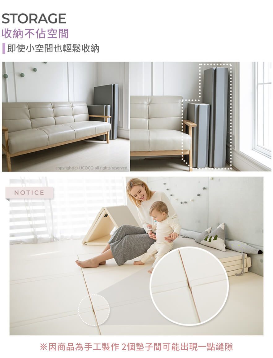 接下來要介紹一款超厲害的「無縫隙折疊地墊」市售的折疊地墊的縫隙很容易卡灰塵,不小心打翻食物跑進縫隙裡更是崩潰。DreamB/GGUMBI 的無縫隙折疊地墊,採用特殊的無縫隙防塵設計,幫媽咪解決清潔地墊的困擾!