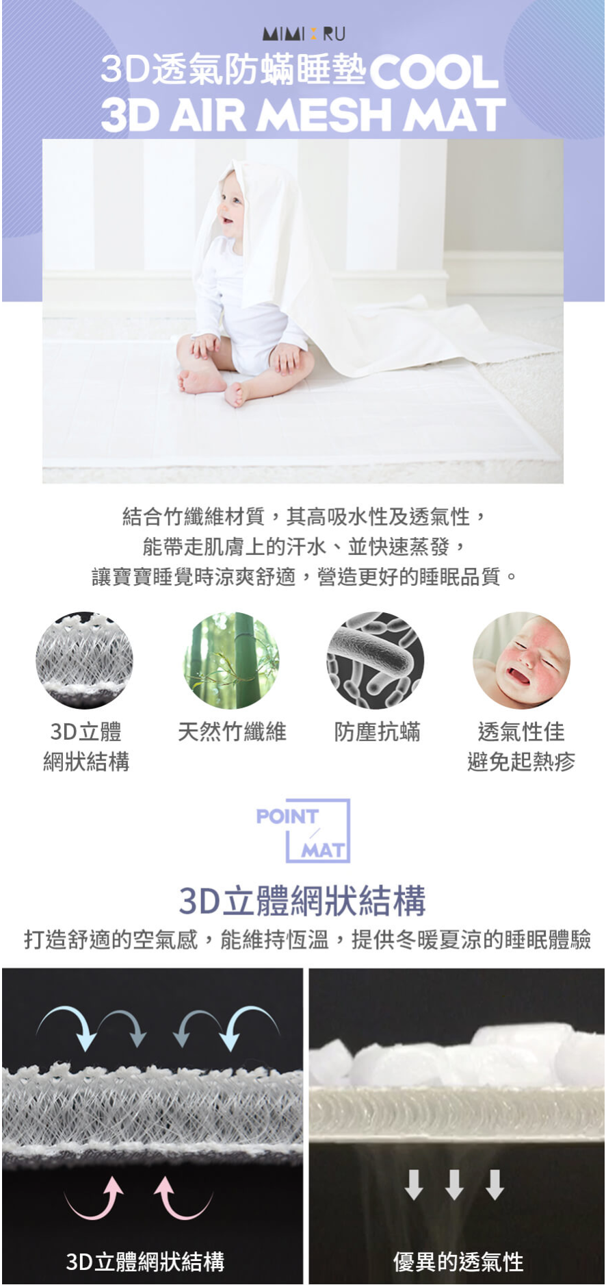 3D透氣防蟎睡墊:80 x 125 cm