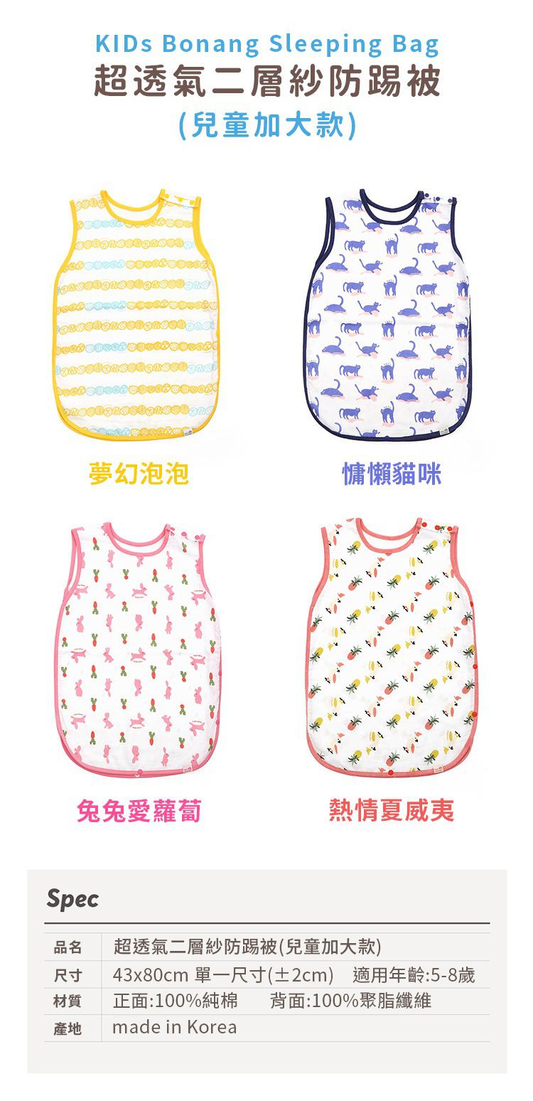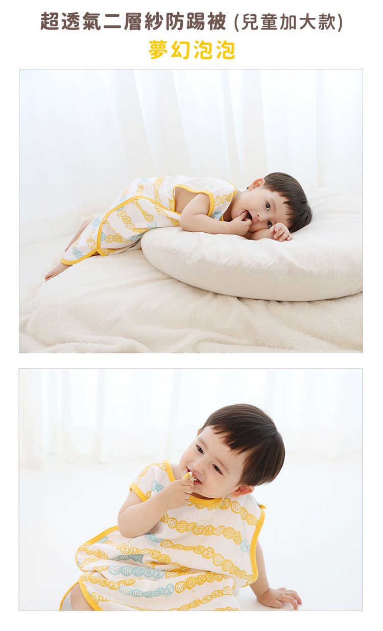透氣純棉二層紗防踢被也有大童款的喔!讓5-8歲的孩子也不怕睡覺踢被著涼~
