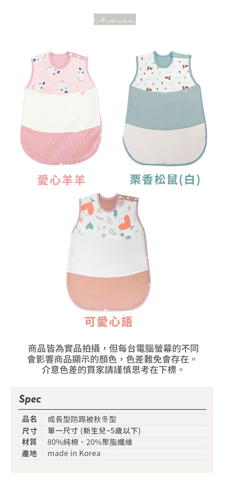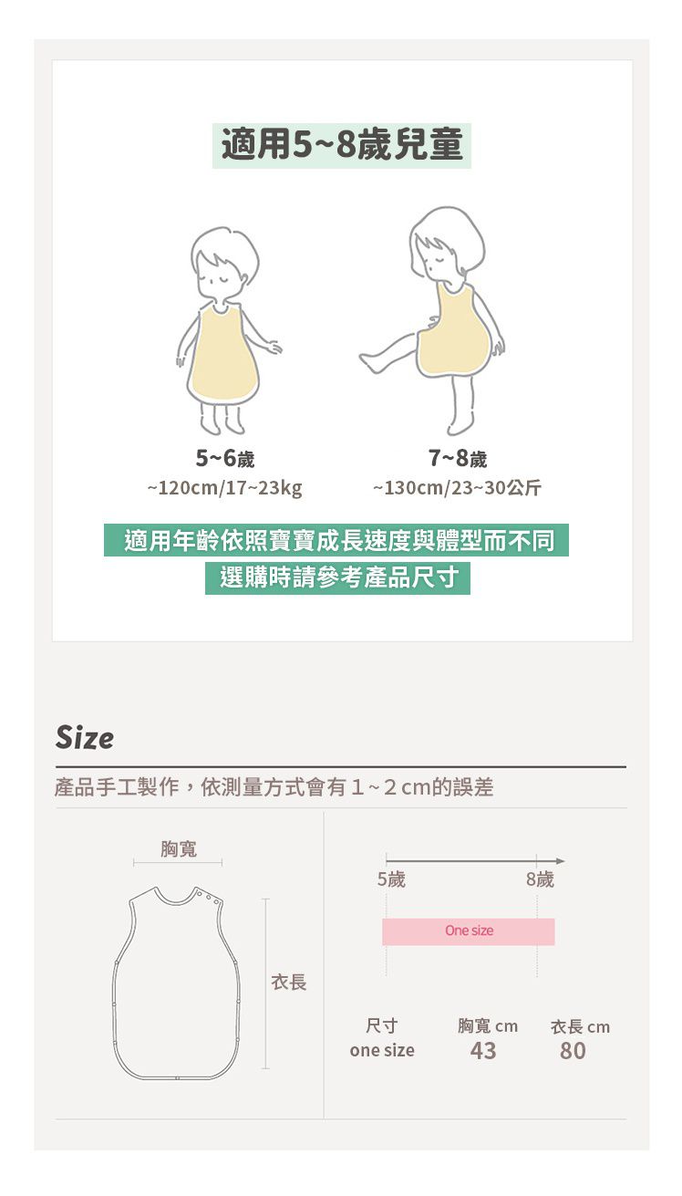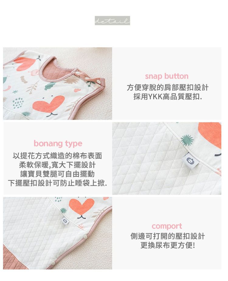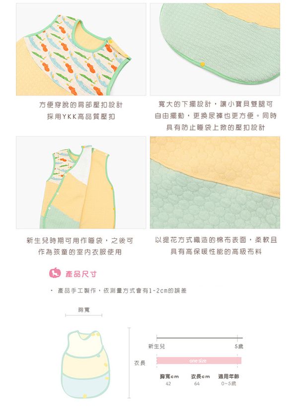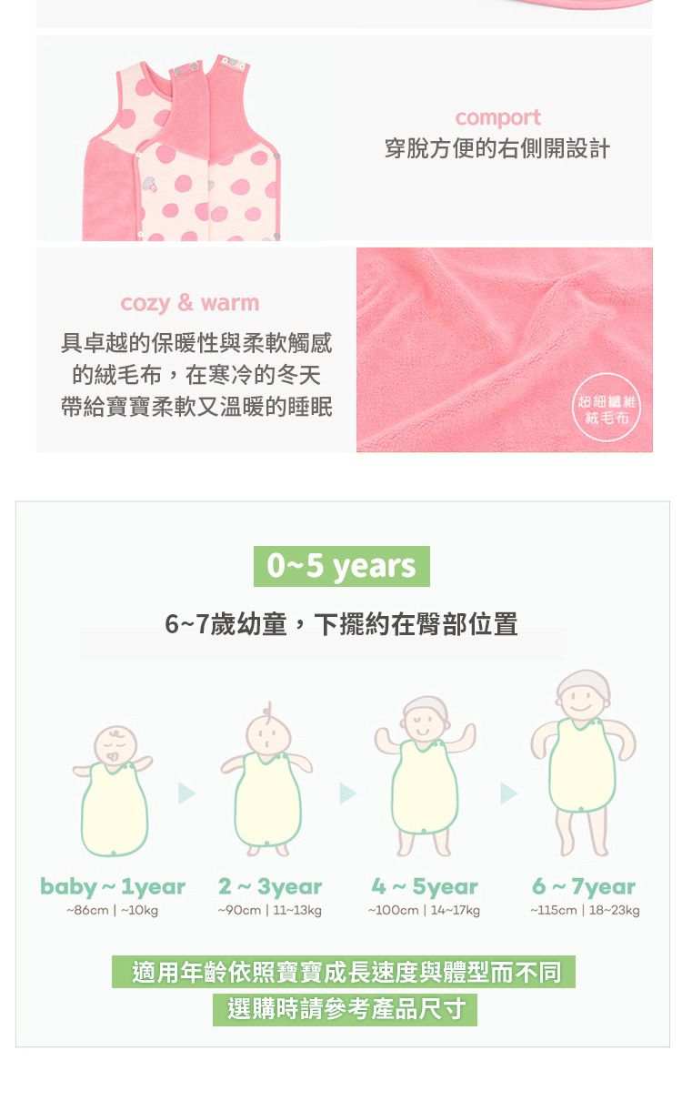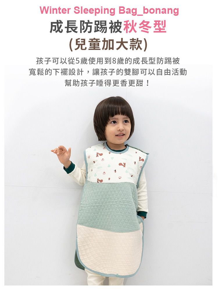 寶寶長得很快,一暝大一吋,這時成長型的防踢被就很實用了!這款從寶貝六個月左右就可以穿,可以用到5~7歲都沒問題喔~