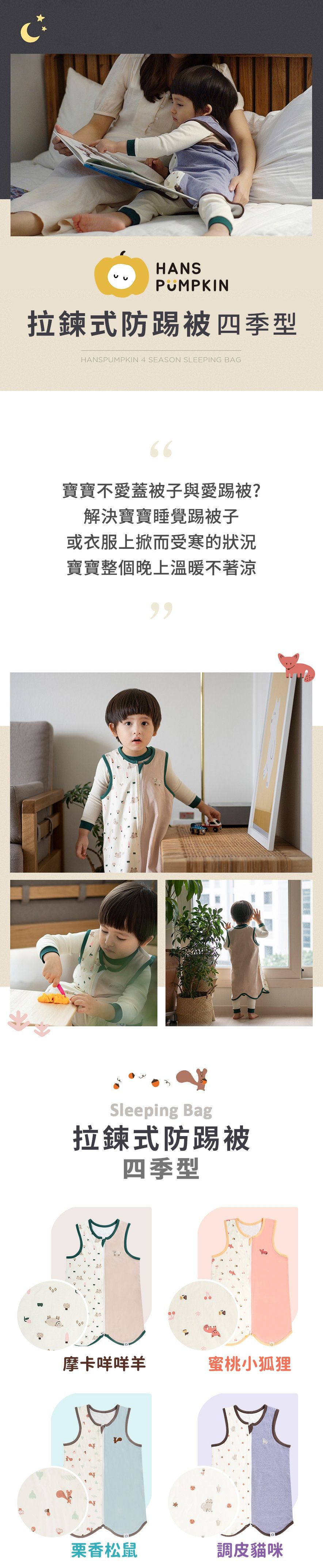 半夜睡覺總是擔心小孩又踢被,待在冷氣房裡一不小心就著涼,尤其現在氣候忽冷忽熱,更要特別小心!但媽咪總不可能每半小時都起來幫寶貝檢查呀!聰明的媽咪趕快幫寶貝準備一條防踢背心吧!防踢背心就像踢不掉的被子,讓寶貝睡覺穿著它,媽咪就不用擔心囉!(´υ`)